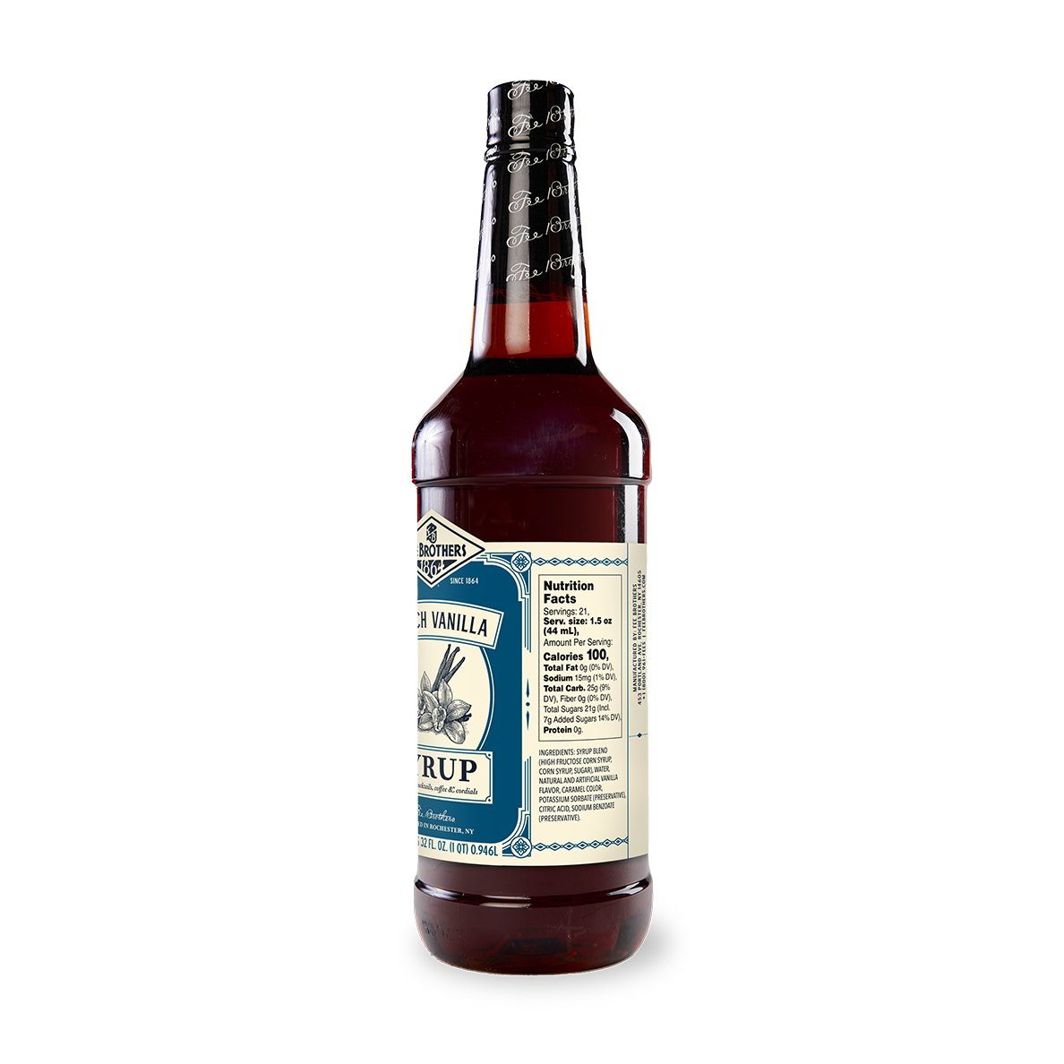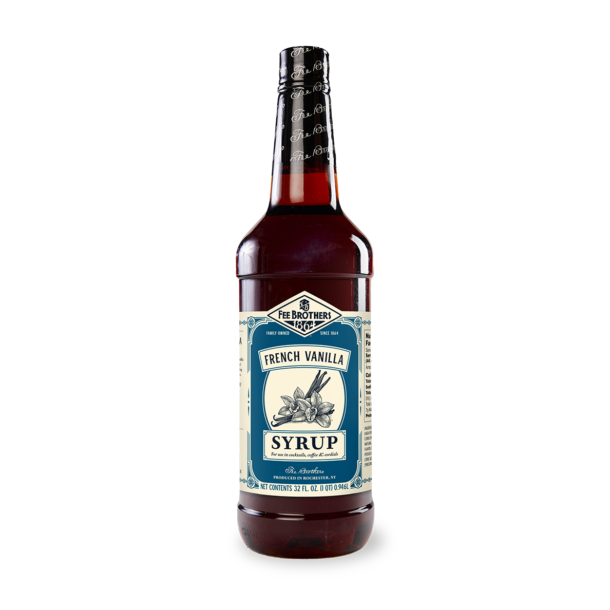 Savor the richness of Fee Brothers Classic French Vanilla Syrup, boasting a subtle caramel undertone, perfect for enhancing cocktails, coffees, and desserts.